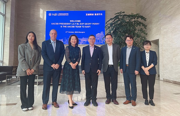 On October 27, Lily Bi, President and CEO of The Association to Advance Collegiate Schools of Business (AACSB), led a delegation to the Shanghai Advanced Institute of Finance (SAIF) at Shanghai Jiao Tong University. The visit centered on enhancing business education quality and refining accreditation services.
