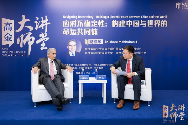 On November 6, Kishore Mahbubani—Founding Dean of the Lee Kuan Yew School of Public Policy at the National University of Singapore, former Singaporean Ambassador to the United Nations, and former President of the UN Security Council—delivered a keynote address at the SAIF Distinguished Speaker Series at the SAIF Greater Hongqiao Center. Under the theme "Navigating Uncertainty: Building a Shared Future Between China and the World," Mahbubani offered insights on the current global landscape and China's evolving role, engaging in substantive exchanges with SAIF faculty, students, and alumni.