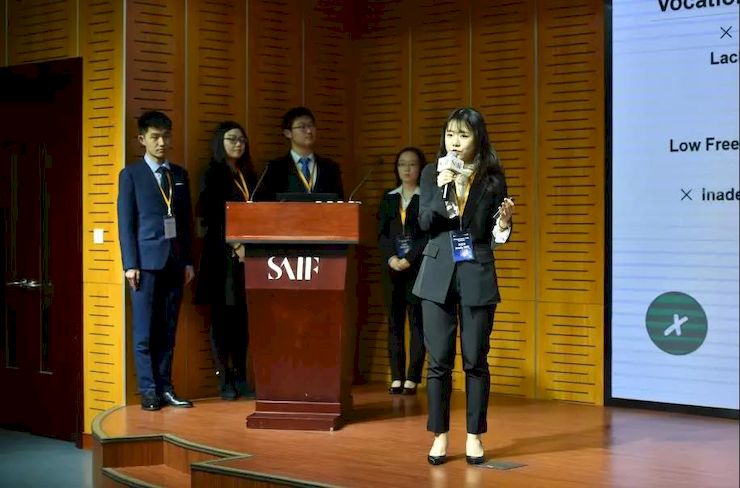 Under the Category of “Education”, the first team from Tsinghua University, as Action Education, mainly created an AI-centered knowledge database to strengthen its competitiveness. The second team from Nanjing University, representing Wenba Technology-Master Learner, further improved the user learning experience through AI technology. The University of Science and Technology of China Team, as Tianyu Education, utilized neural network and algorithms to demonstrate a new personalized teaching model. The fourth team from Xi'an Jiao Tong University, as VIPKID, boasts profitability improvement by better matching teachers and students. Finally, the team from Xi’an Jiaotong University won the Best Pitch with their solid business analysis and industry insight.